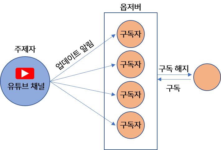 Observable은 subscribe() 메서드를 통해 구독됩니다. 이를 통해 Observer가 Observable에서 발생하는 이벤트를 수신할 수 있습니다.