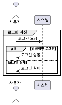 이 예제에서는 로그인 과정을 group으로 묶어 성공과 실패의 경우를 alt와 else로 나누어 표현하고 있습니다.