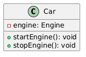 이 코드에서 Car 클래스는 비공개 필드 engine과 공개 메소드 startEngine() 및 stopEngine()을 포함하고 있습니다.