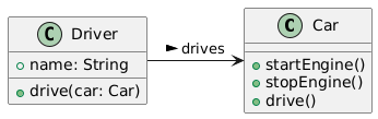Driver -right-> Car : drives >