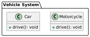이 예제에서는 Car와 Motorcycle을 "Vehicle System" 패키지로 그룹화하고 있습니다.