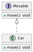 Car 클래스가 Movable 인터페이스를 구현하는 관계를 나타내고 있습니다.