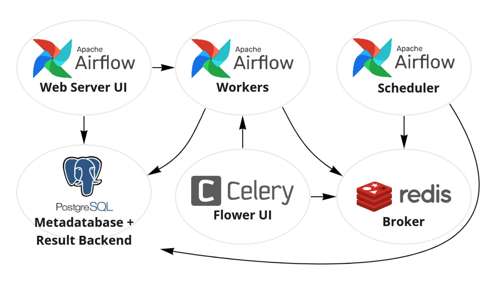 - 각 Worker는 Redis 큐에 담긴 작업을 받아 실행하고, 그 결과를 PostgreSQL에 저장합니다. 이 Worker가 없다면 작업을 실행할 수 없기 때문에, CeleryExecutor 구조에서는 필수적인 컴포넌트입니다.