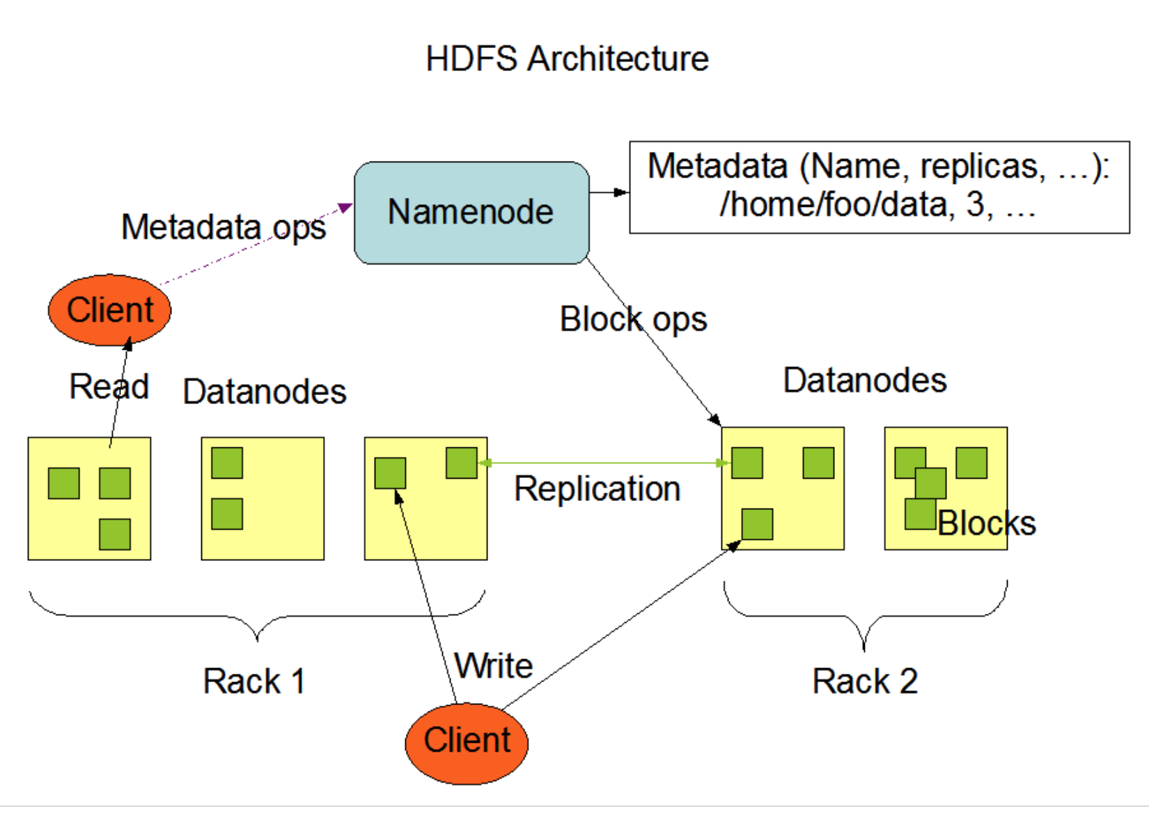 - HDFS는 하둡 클러스터에서 대용량의 데이터를 안정적으로 저장하고 처리하기 위한 분산 파일 시스템