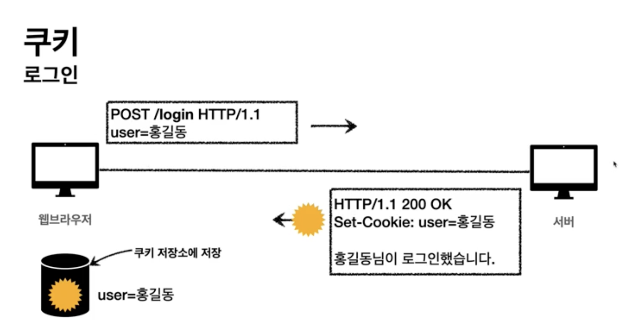 2. 클라이언트는 쿠키를 쿠키저장소에 저장하고 다음부터 모든 request에 쿠키를 자동으로 보내도록 한다.
